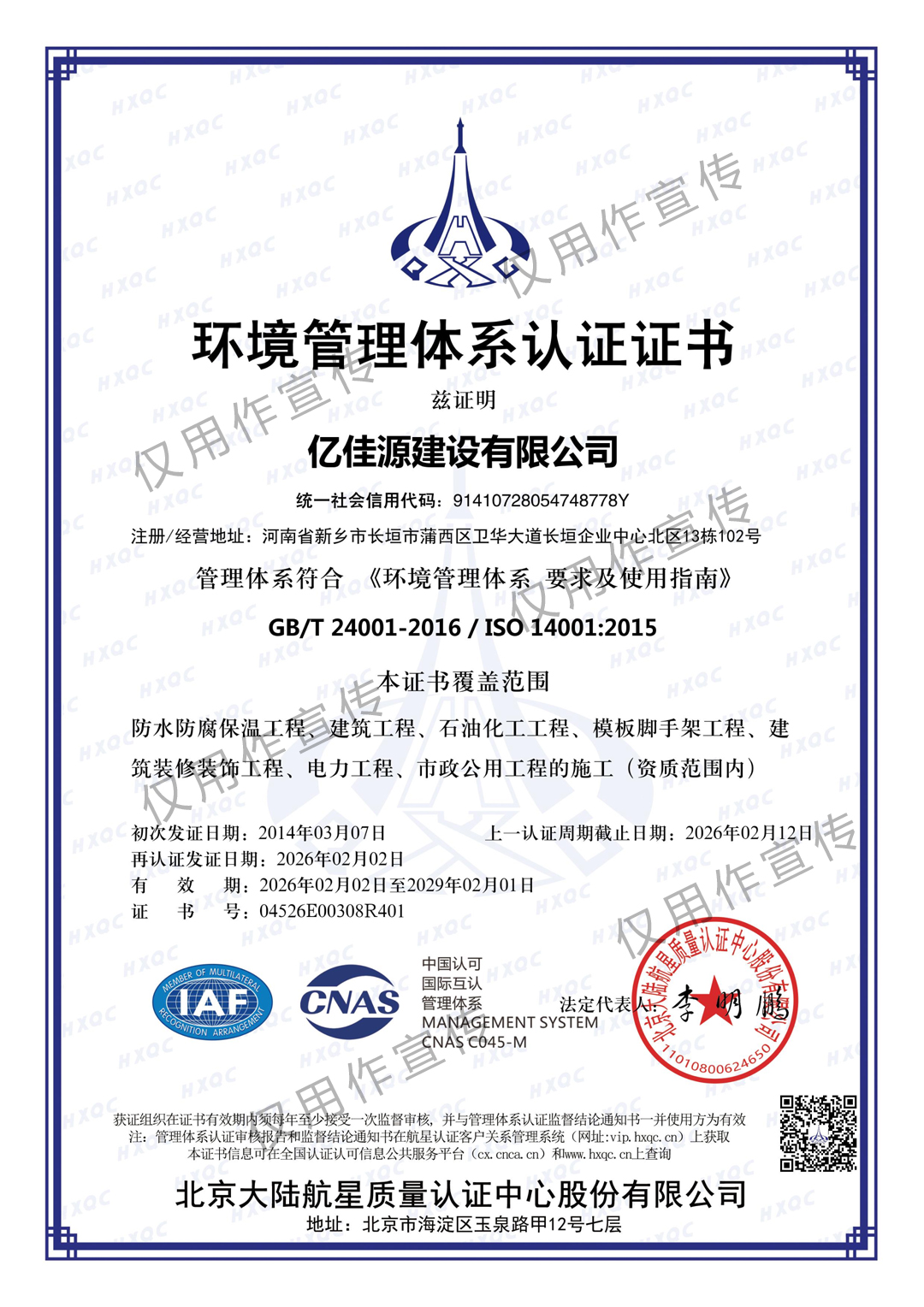 一级防水防腐保温工程专业承包施工企业