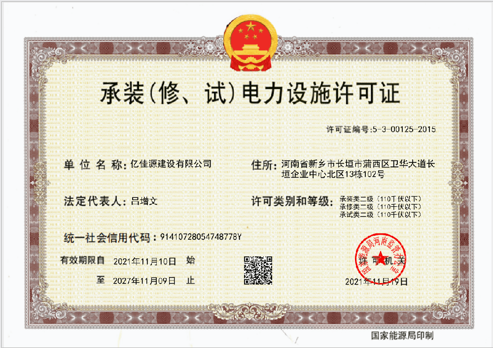 承装(修、试)电力设施许可证